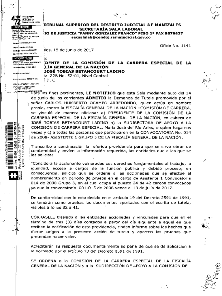 SI.,4c×o POE, I7O 1 IT 0OOA55LiM×l00iT1I2\' 0SLPRIOR DE TRIBUNAL SUPERIOR DEL DISTRICT JUDICIAL DE MANIZALES SECRETARY SALE LABORALsainos×i IO DE JUSTICE \” FANNY GONZALEZ FRANCO\” PESO 1 0