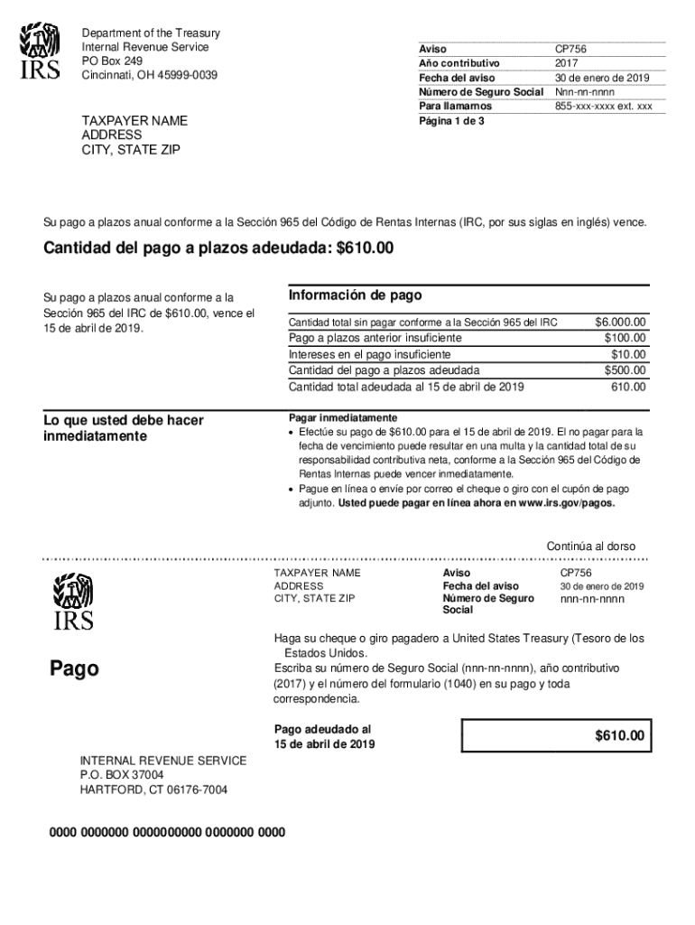 Get the free Notice CP756 - Internal Revenue Service