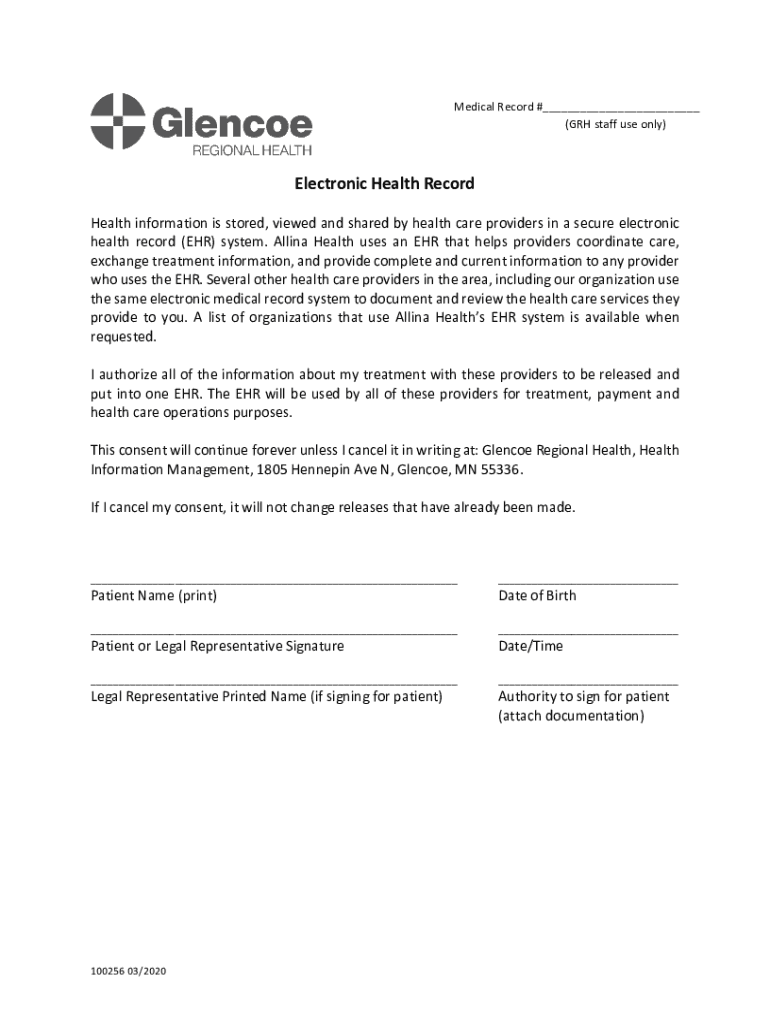 Medical Record #___ (GRH staff use only×Electronic Health Record Health information is stored, viewed and shared by health care providers in a secure electronic health record (EHR) system. Alaina