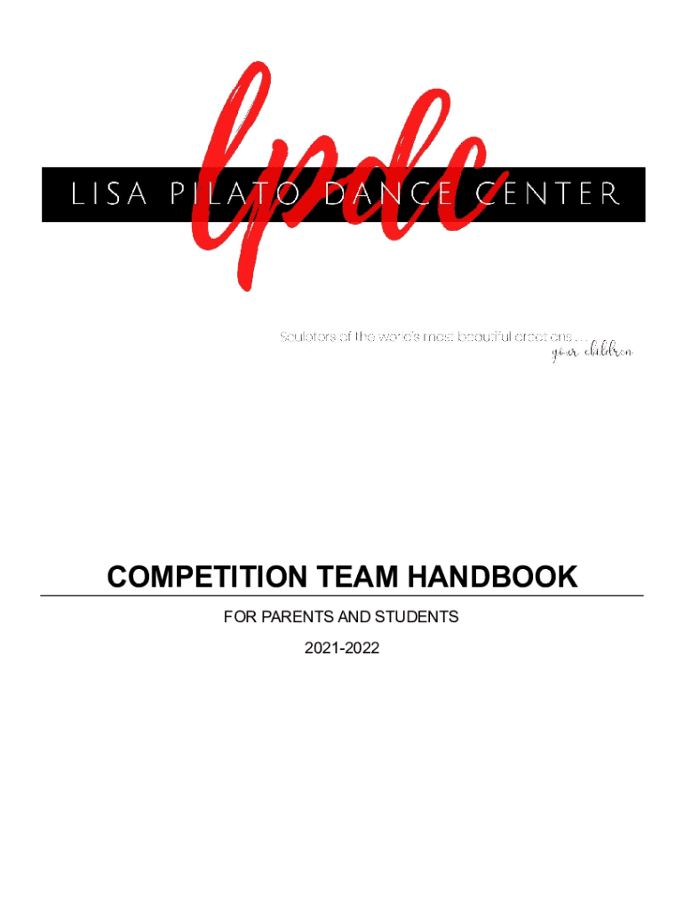 COMPETITION TEAM HANDBOOK FOR PARENTS AND STUDENTS 20212022TABLE OF CONTENTS 1 Introduction 2 Studio and Team Mission Statement 3 Getting Started 4 Communication and Information 5 Code of Conduct
