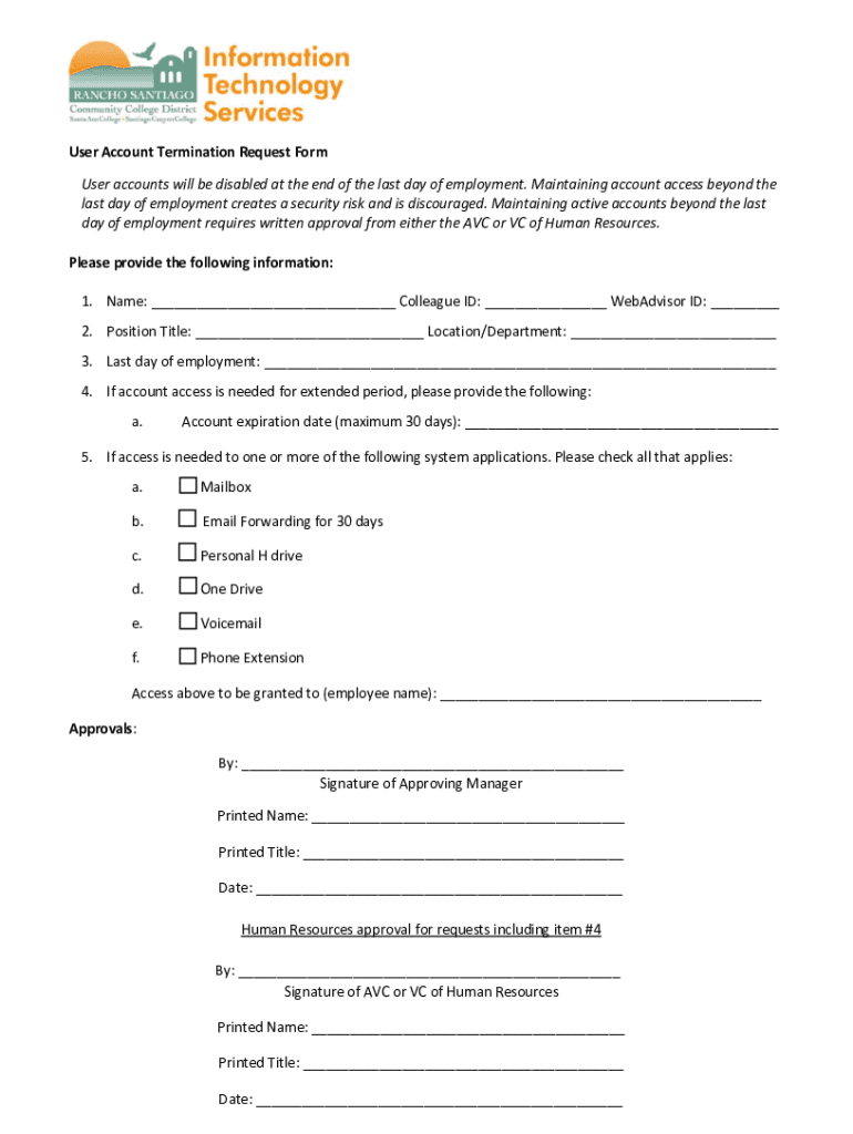 Get the free User Account Termination Request Form - rsccd.edu