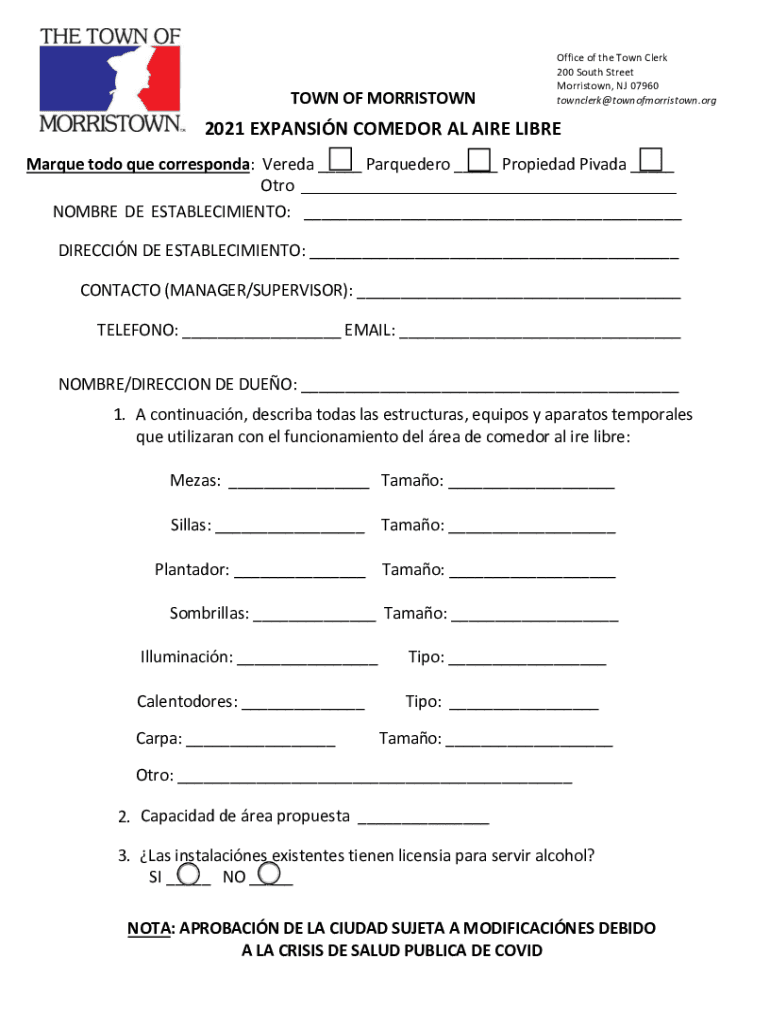 TOWN OF MORRISTOWNOffice of the Town Clerk 200 South Street Morristown, NJ 07960 town clerk×townofmorristown.org2021 EXPANSION COMEDO ALA IRE LIBRA Marque to-do Que correspond: Hard ___ Parquetry