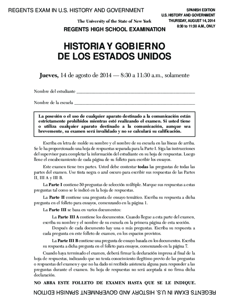 Get the free Regents Exam In Us History And Government