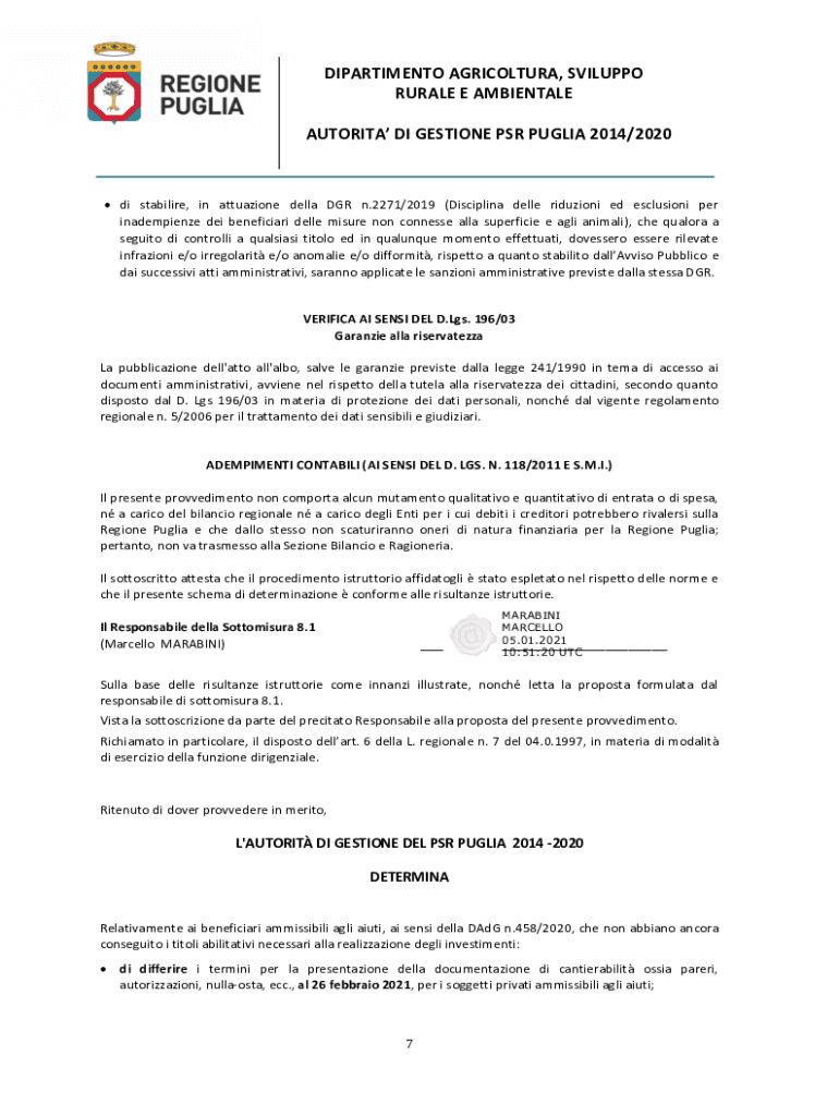 DIVERTIMENTO AGRICULTURAL, FILIPPO RURAL E AMBIENT ALE AUTHORITY DI GEMSTONE PSR PAGLIA 2014×2020ATTO DIRIGENZIALE ___ VITO article 32 Della Legged n. 69 Del 18×06/2009Codifica adempimenti L.R.