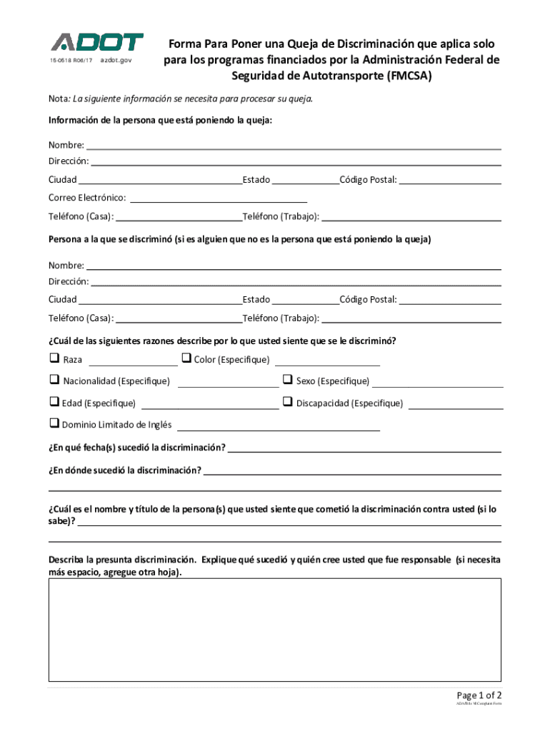 150518 R06×17azdot.conform Para Power RNA Queen de Discriminacin Que Africa solo para Los programs financials POR la Administration Federal de Seguridad de Autotransporte (FMCSA×Not: La migraine
