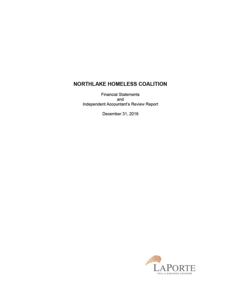 NORTHLAND HOMELESS COALITION Financial Statements and Independent Accountant\'s Review Report December 31, 2016LAPORTE CPA's t business AovisopsContentsIndependent Accountant\'s Review Report1 2Financial