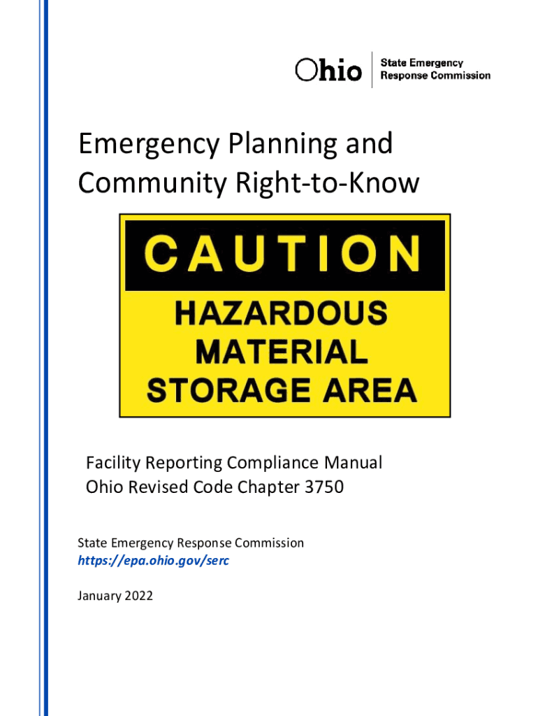 Emergency Planning and Community RighttoKnowFacility Reporting Compliance Manual Ohio Revised Code Chapter 3750 State Emergency Response Commission HTTPS://EPA.Ohio.gov×Serb January 2022This program