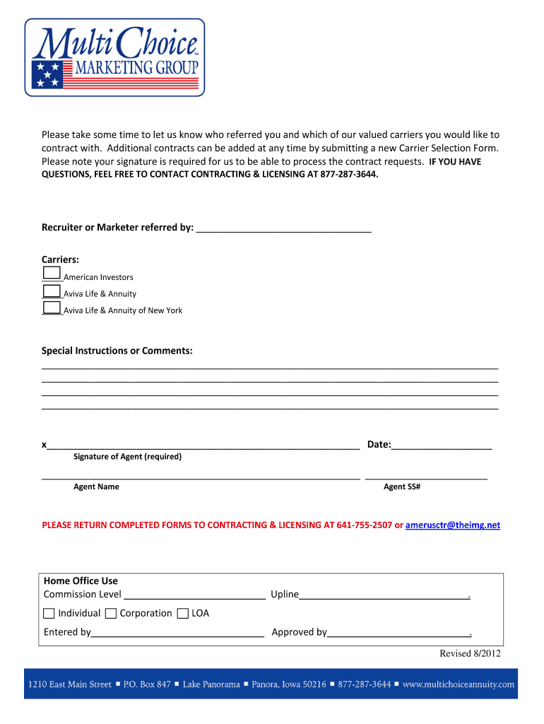 Get the free Carrier Selection Form