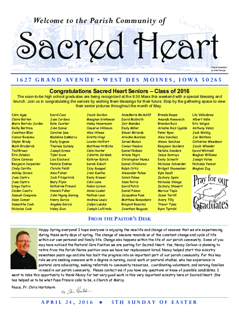 Welcome to the Parish Community sacred Heart Church illustration by Sheri George1 6 2 7 G R A N D AV E N U E W E S T D E S M O I N E S, I O WA 5 0 2 6 5 Congratulations Sacred Heart Seniors Class