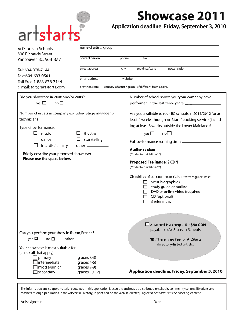 Artstarts Showcase 2011 is not the form you're looking for?Search for another form here.