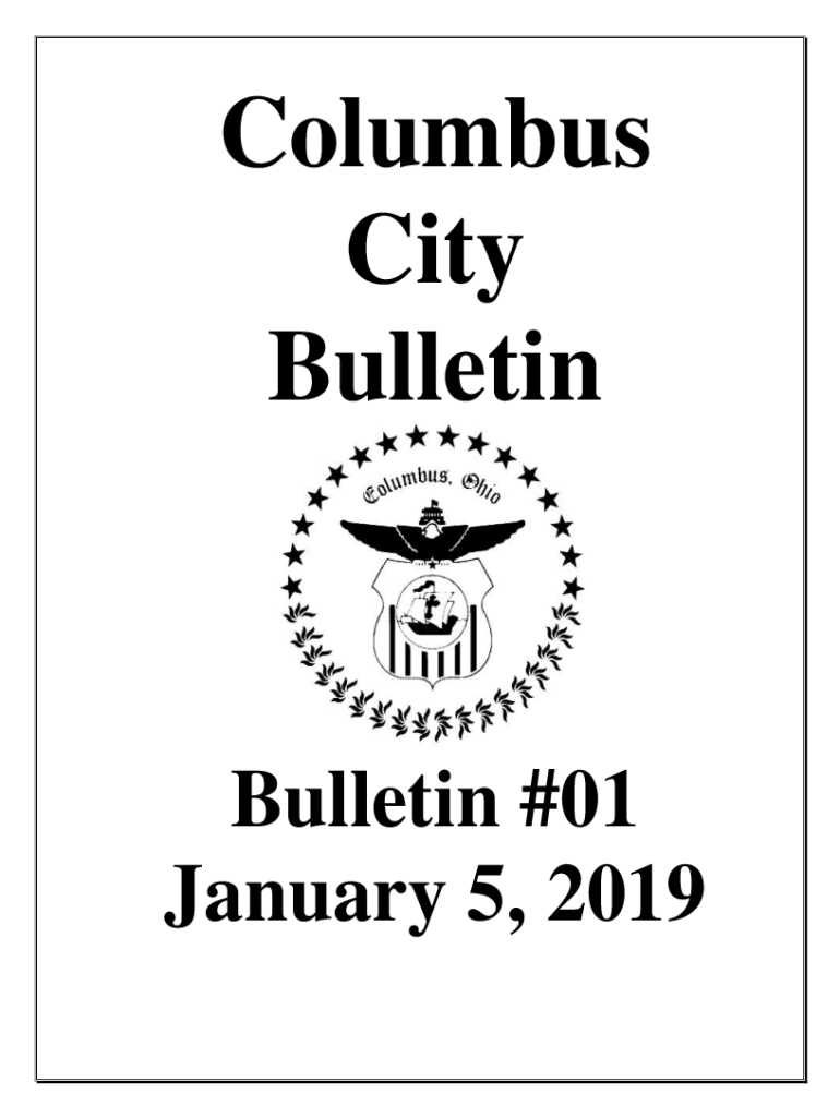 Columbus City BulletinBulletin #01 January 5, 2019Proceedings of City Council Saturday, January 5, 2019SIGNING OF LEGISLATION (Note: There was no City Council meeting on Monday, December 31, 2018;
