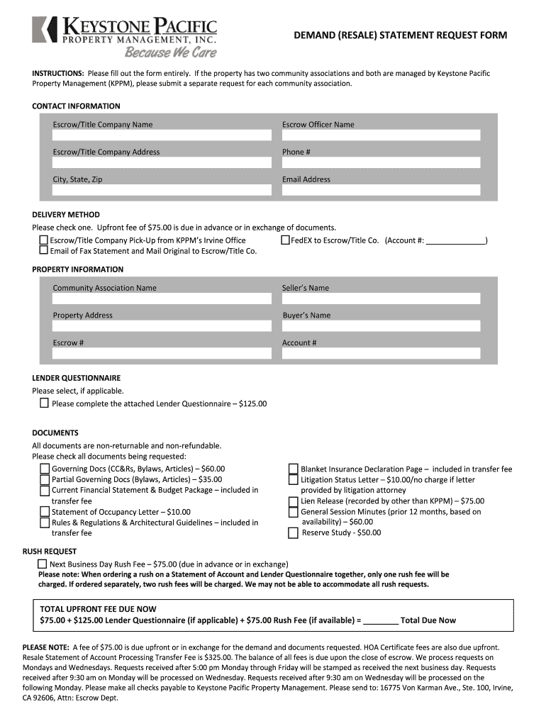 Get the free Demand Statement Form - Property Management