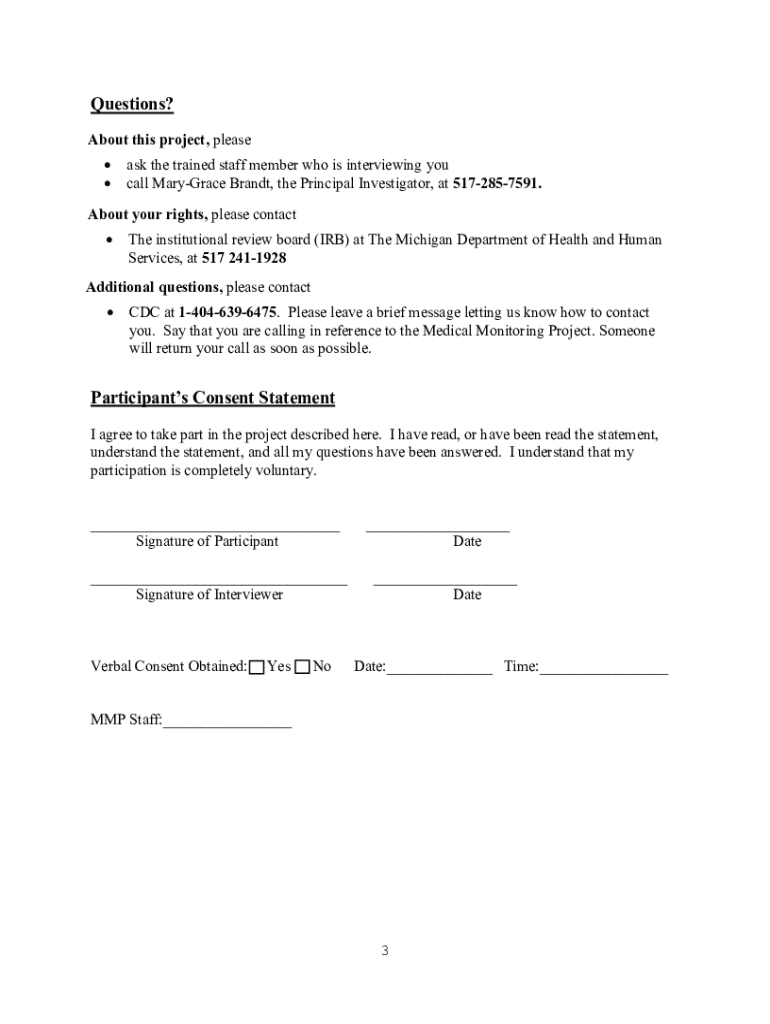 Medical Monitoring Project Statement of Informed Consent The following statement must be read to all potential participants: You have been selected to participate in this project because you have