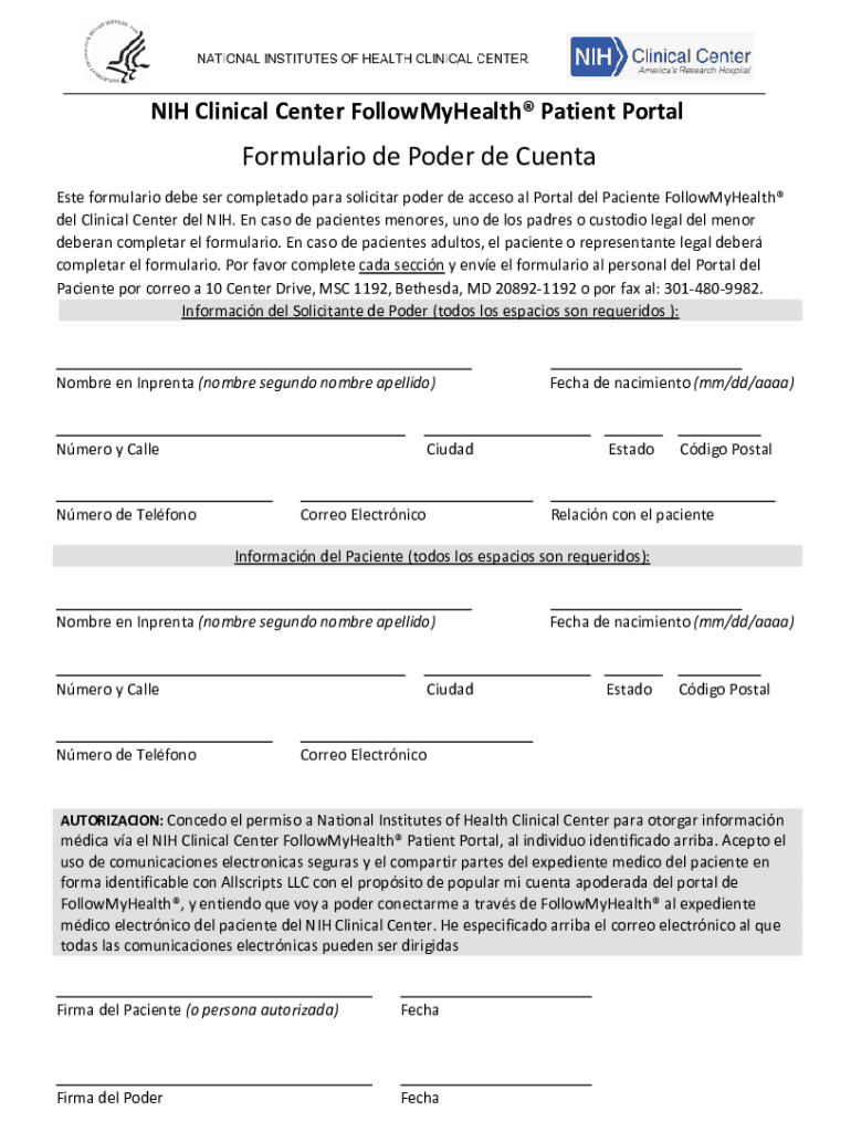 NIH Clinical Center FollowMyHealth Patient PortalFormulario de Poder de Cuenta Ester formulation debt SER completed para solicitor power DE accesses all Portal Del Patients FollowMyHealth Del Clinical