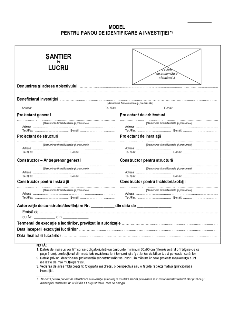 MODEL PE NTRU PA NOU DE IDENTIFIABLE A INVESTED *)ANTLER NLUCRUvedere de Assembly a obiectivuluiDenumirea i area obiectivului .......................................................................................................