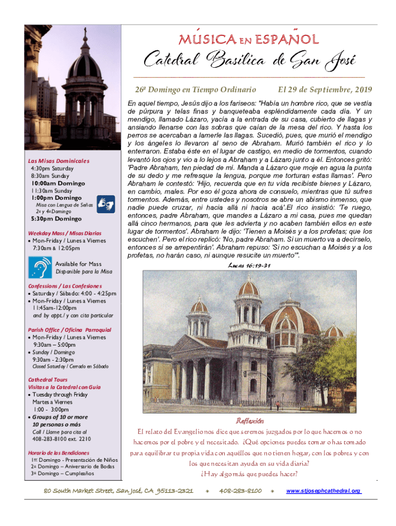 MSICAENESPAOL26 Domingo en Tempo Ordinarily Miss Dominic ales 4:30pm Saturday 8:30am Sunday 10:00am Domingo 11:30am Sunday 1:00pm Domingo Miss con League DE Seas 2o y 4o Domingo5:30pm DomingoWeekday