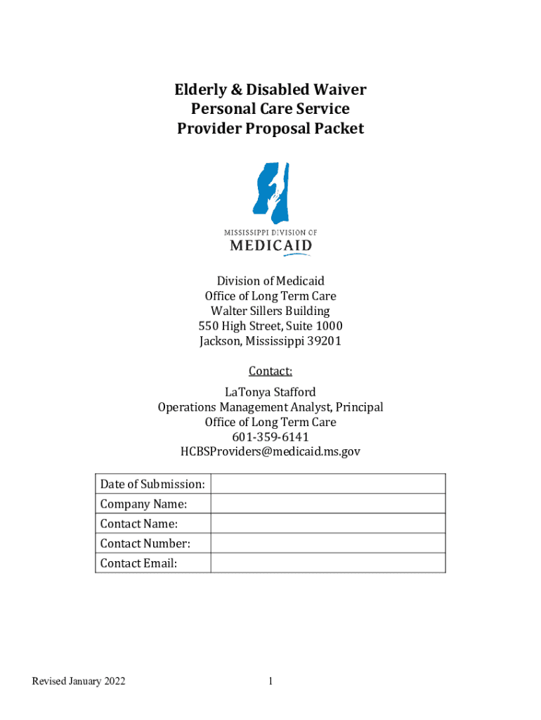 Elderly & Disabled Waiver Personal Care Service Provider Proposal PacketDivision of Medicaid Office of Long Term Care Walter Sellers Building 550 High Street, Suite 1000 Jackson, Mississippi 39201