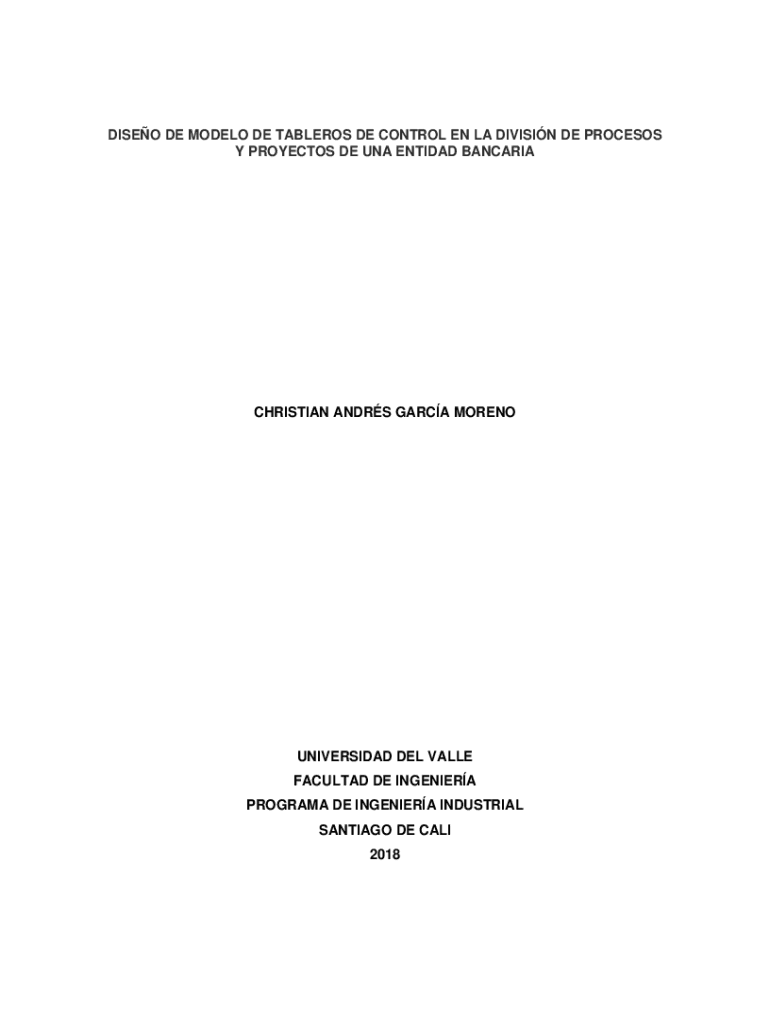 DISCO DE MODEL ODE TABLE ROS DE CONTROL EN LA DIVISION DE PROCESS Y PROJECTS DE RNA ENTICED BANCARIACHRISTIAN ANDES GARCIA MORENOUNIVERSIDAD DEL VALUE FACULTY DE GENERA PROGRAM DE GENERA INDUSTRIAL