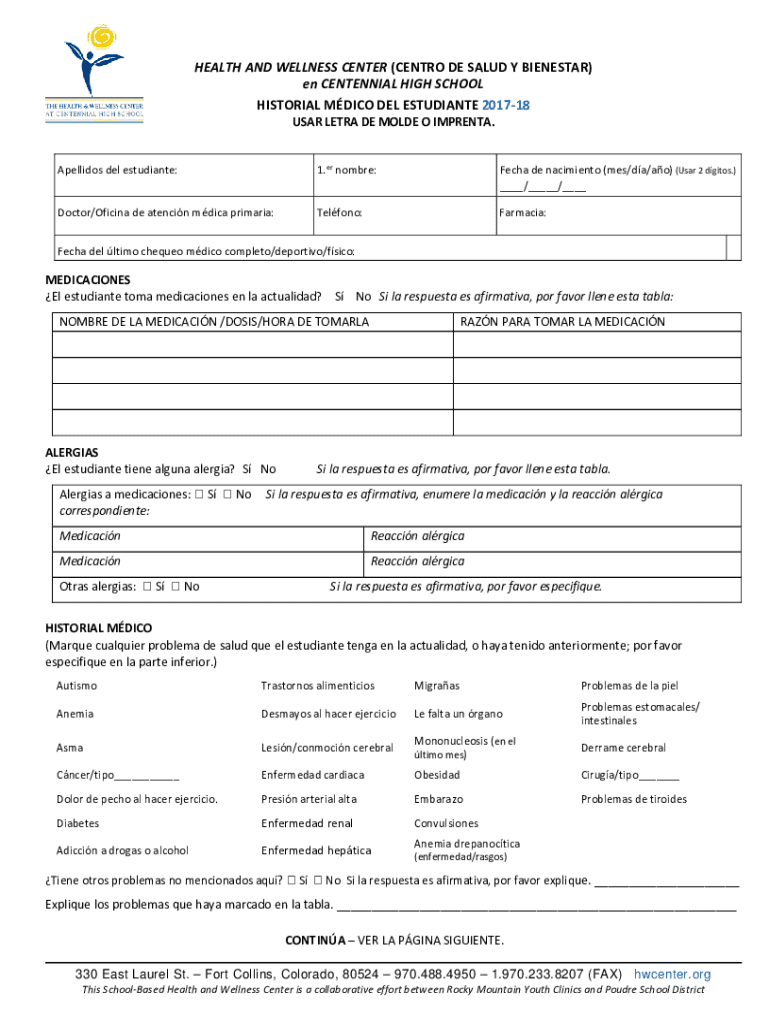 HEALTH AND WELLNESS CENTER (CENTR ODE SALAD Y INSTAR) en CENTENNIAL HIGH SCHOOL HISTORICAL MEDICO DEL ESTUDIANTE 201718 USER PETRA DE MODE O IMPRINT. Spellings Del estudiante:1.er hombre:Tech de Nascimento