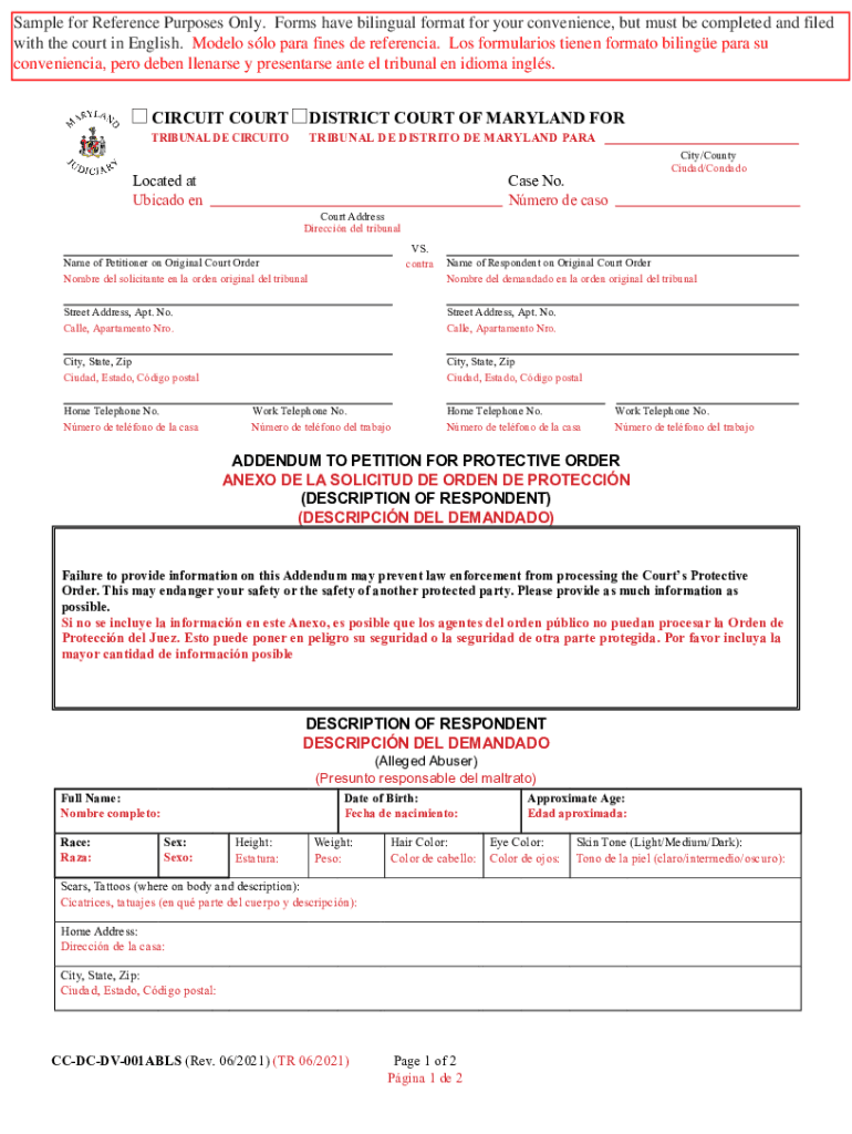 Sample for Reference Purposes Only. Forms have bilingual format for your convenience, but must be completed and filed with the court in English. Model SLO para fines DE reference. Los' formularies