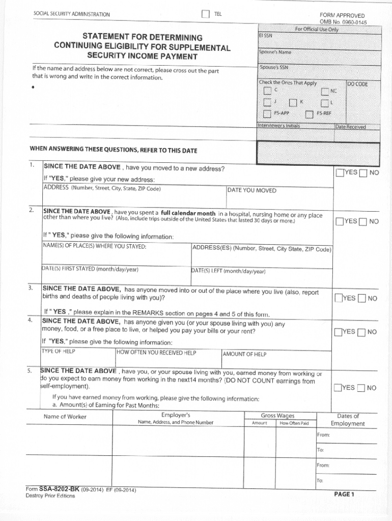 Get the free Form SSA 8202 BK SSA 8202 BK Statement for Determining Continuing Eligibility Supplem
