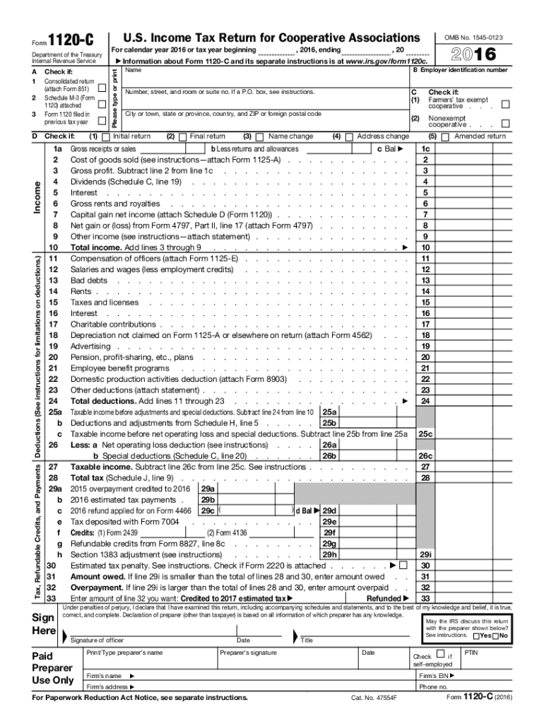 Form 1120-C requires information about the cooperative association's income, deductions, and credits.