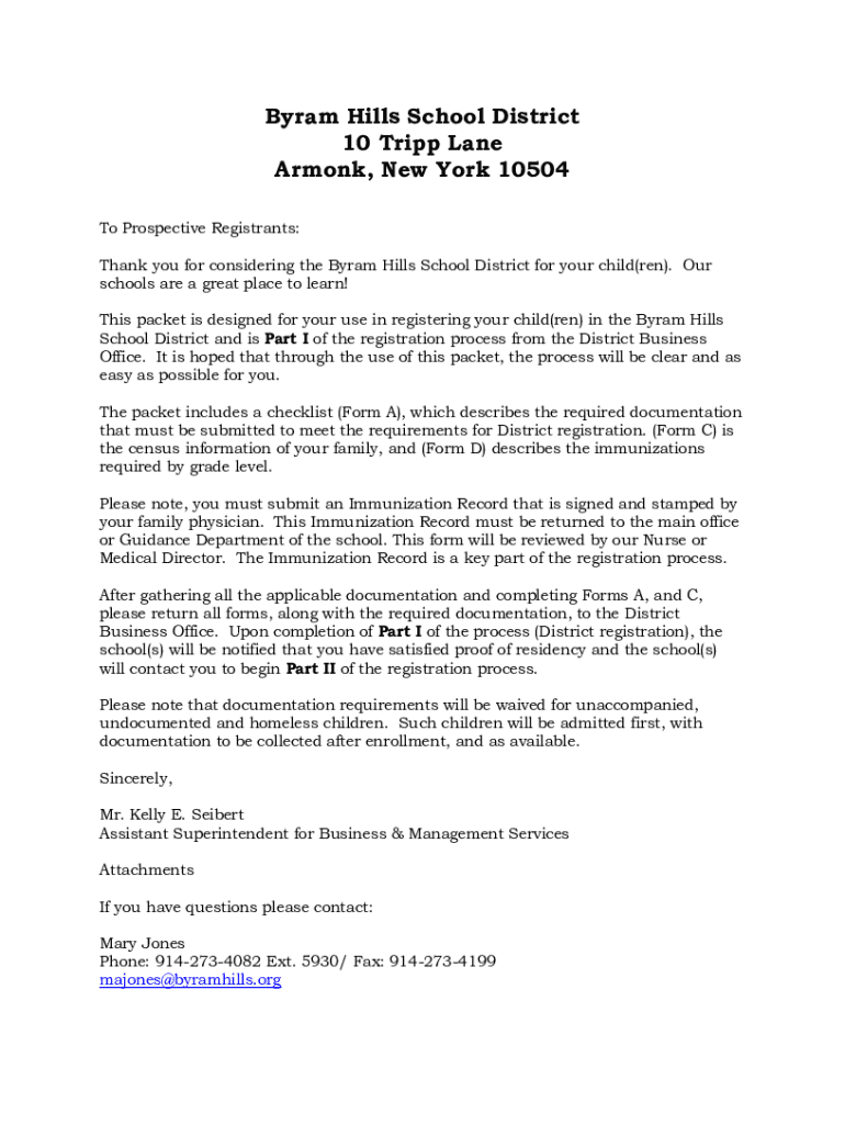 By ram Hills School District 10 Trip Lane Armonk, New York 10504 To Prospective Registrants: Thank you for considering the By ram Hills School District for your child×men×. Our schools are a great