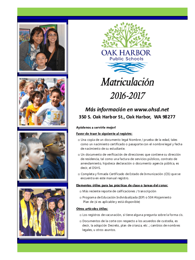 Matriculation 20162017 Ms information en www.ohsd.net 350 S. Oak Harbor St., Oak Harbor, WA 98277 Addends a servile major! Favor DE trader lo migraine all registry: RNA copra de UN document legal