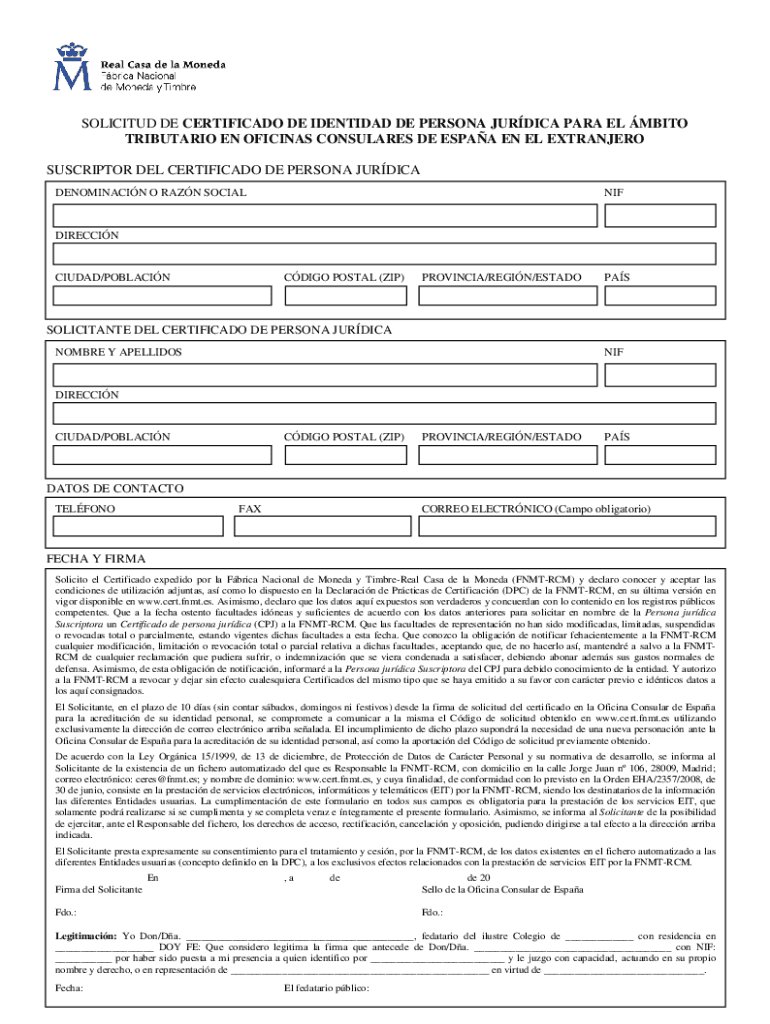 Get the free solicitud de certificado de identidad de persona jurdica para ...