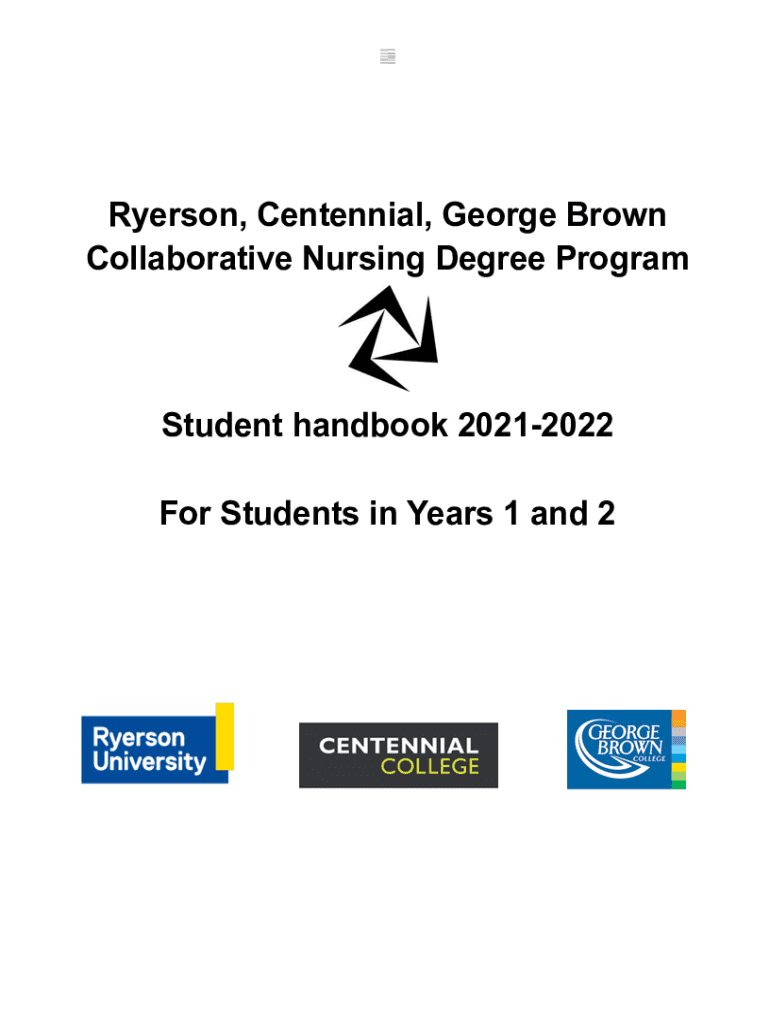 Ryerson, Centennial, George Brown Collaborative Nursing Degree ProgramStudent handbook 20212022 For Students in Years 1 and 2Students are required to access their respective institutional learning