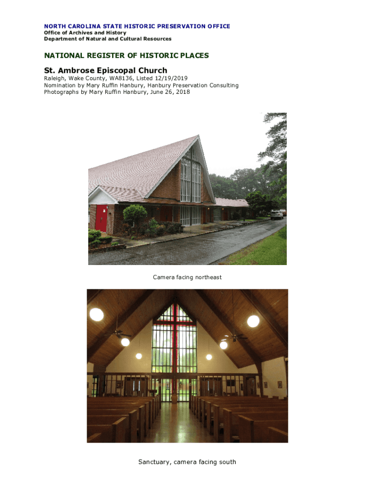 NORTH CAROLINA STATE HISTORIC PRESERVATION OFFICE of Archives and History Department of Natural and Cultural ResourcesNATIONAL REGISTER OF HISTORIC PLACES St. Ambrose Episcopal Church Raleigh, Wake