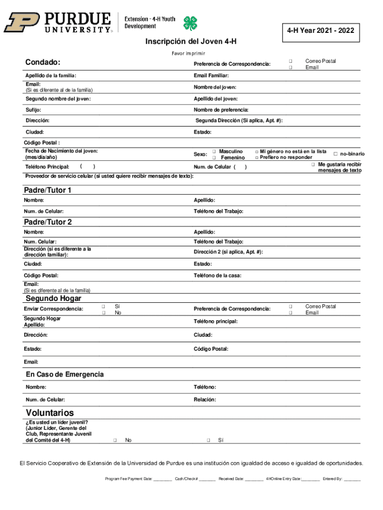 4H Year 2021 2022Inscripcin Del Oven 4H Favor imprimirCondado:Preference de Correspondencia:Adelaide de la familiar:Email Familiar:Email: (Si BS different all DE la familiar×Hombre Del oven:Segundo