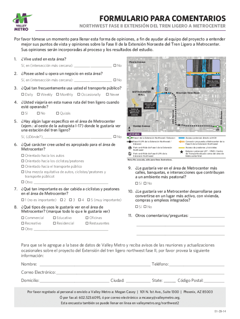 Formulation para comentariosNORTHWEST Base II EXTENSION DEL THEN LIBERO A METROCENTER POR favor these UN moment para clear ESTA form DE opinions, a fin de Adar all equip Del projects an engender major