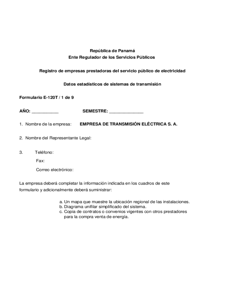 Replica de Panam Enter Regulator de Los Services Polices Registry DE empress Protagoras Del service public DE electrician Dates estadsticos de systems DE transmission Formulation E120T / 1 DE 9 AO: