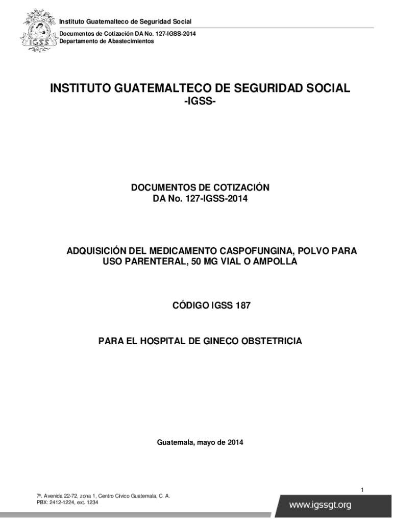 Institute Guatemalteco de Seguridad Social Documents de Cotizacin DA No. 127IGSS2014 Department de AbastecimientosINSTITUTO GUATEMALTECO DE SCIURIDAE SOCIAL IGSSDOCUMENTOS DE COTIZACIN DA No. 127IGSS2014ADQUISICIN