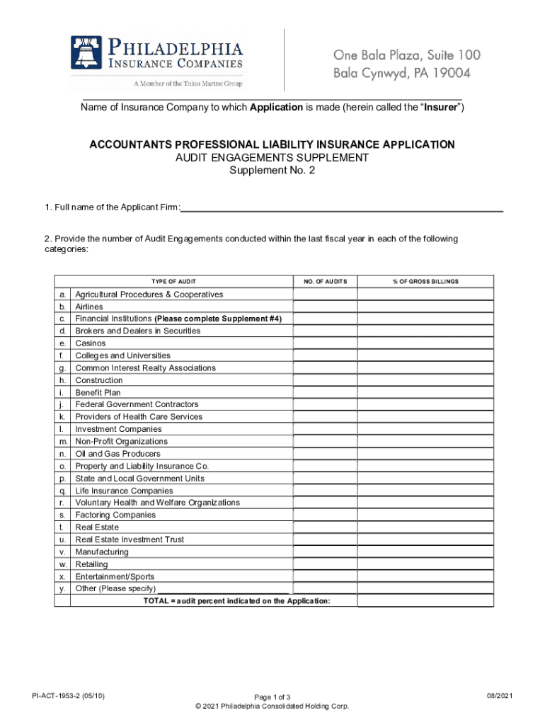 Print ApplicationClear Application___ Name of Insurance Company to which Application is made (herein called the Insurer×ACCOUNTANTS PROFESSIONAL LIABILITY INSURANCE APPLICATION AUDIT ENGAGEMENTS