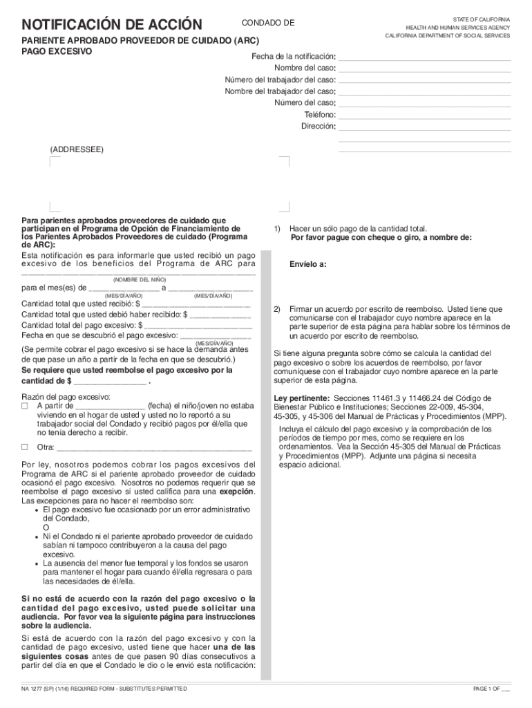 Get the free NOTIFICACIN DE ACCIN - California Department of Social ...