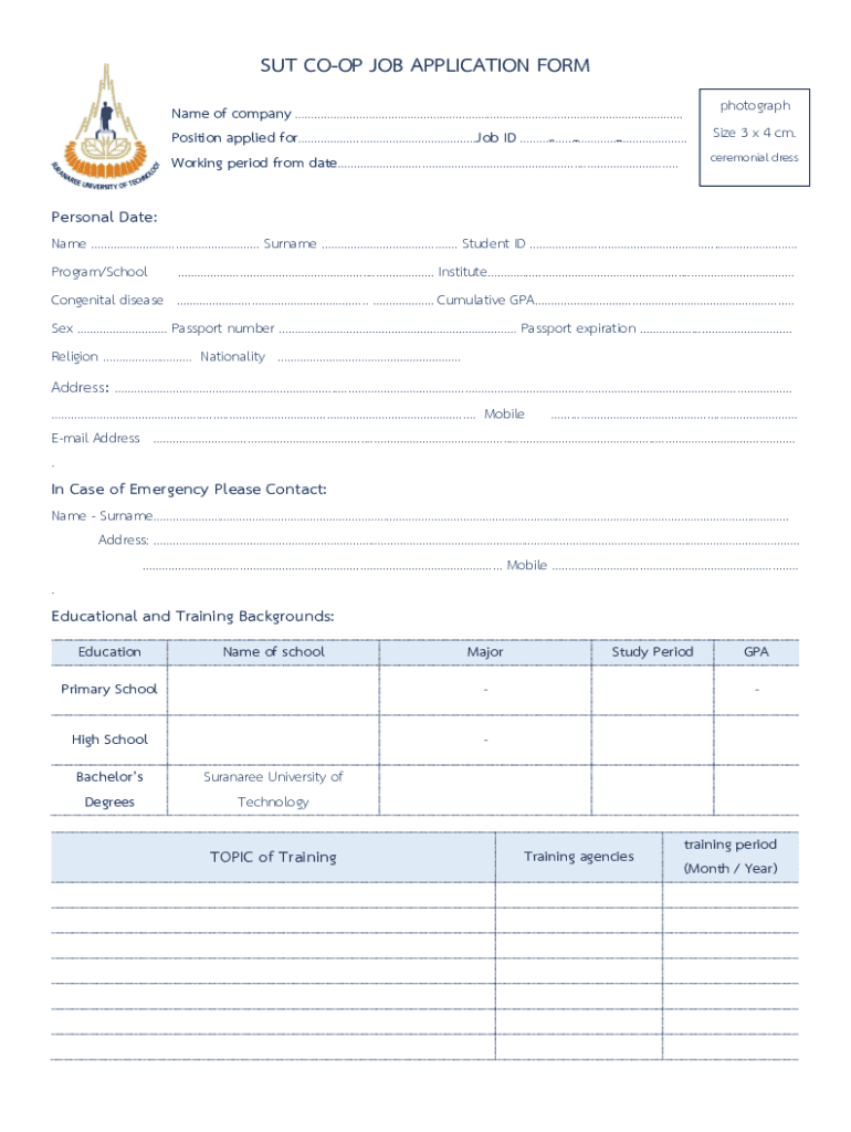 Get the free Online Job Application Form. Name: Position ... - coop sut ac