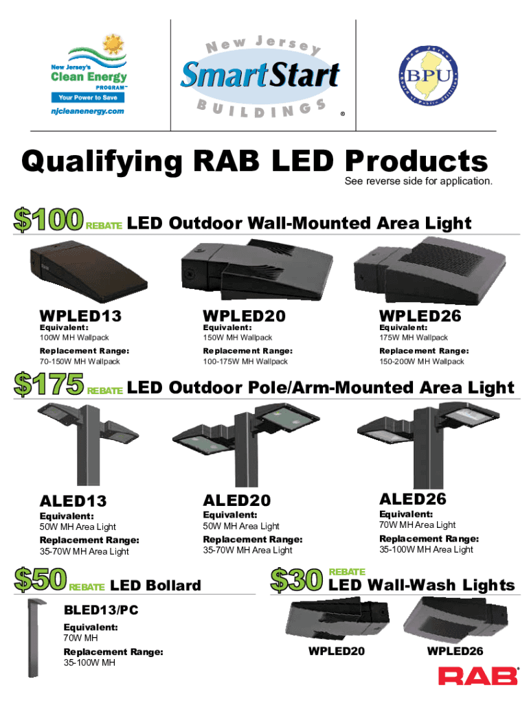 New Jersey Clean Energy Lighting ProgramUtility Rebates Qualifying RAB LED Products 2011 Prescriptive Lighting Application rebate application form Customer Information1. Go to www.rabweb.com×save