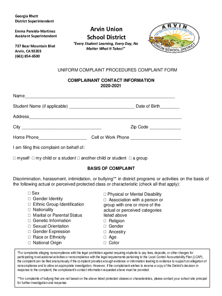 Georgia Rhett District Superintendent Arvin Union School District Emma PereidaMartinez Assistant Superintendent 737 Bear Mountain Blvd Arvin, CA 93203 ×661) 8546500Every Student Learning, Every Day,