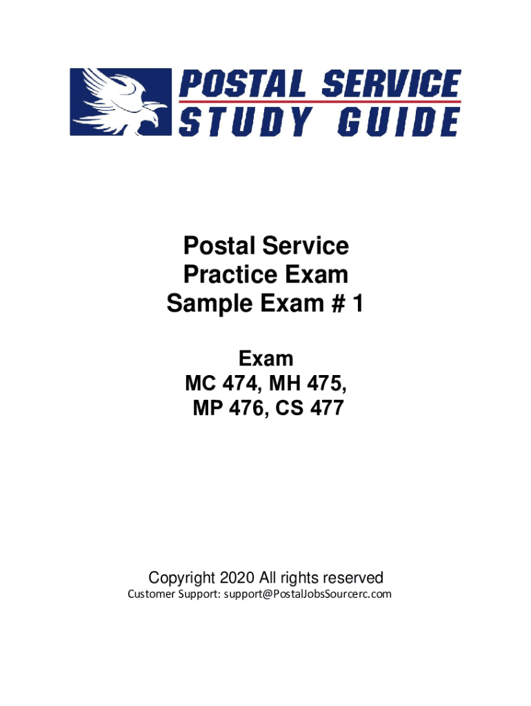 Postal Service Practice Exam Sample Exam # 1 Exam MC 474, MH 475, MP 476, CS 477Copyright 2020 All rights reservedCustomer Support: support×PostalJobsSourcerc.introduction PLEASE READ THIS INTRODUCTION