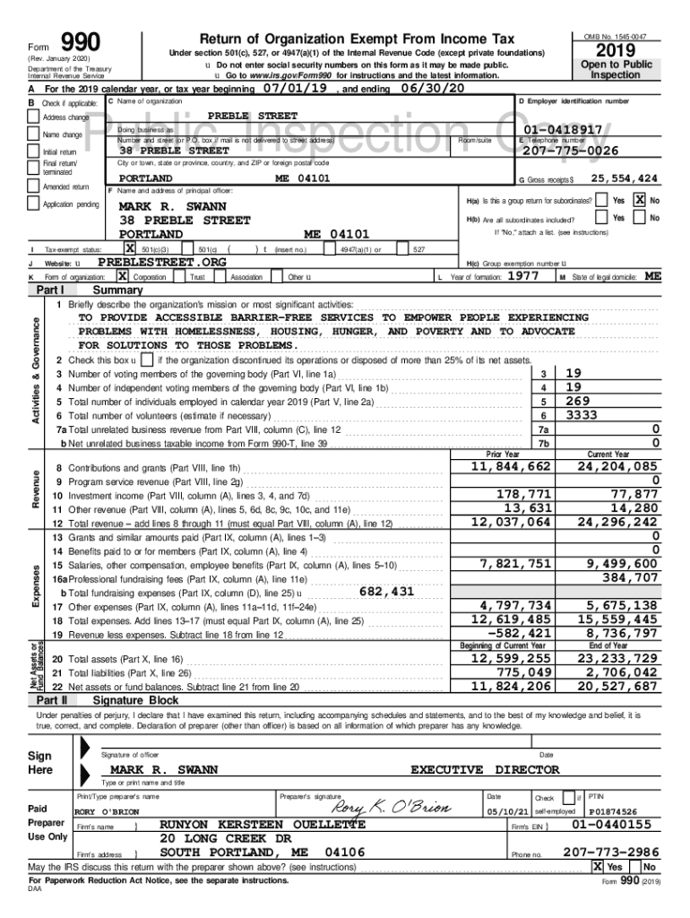 Get the free v1 PREBLE STREET91289.0990 NOT-FOR-PROFITWORKPAPERSPREBLEUS2019PUBLICINSPECTIONTAXDO...