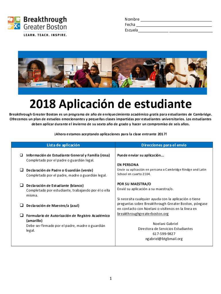 Students who wish to enroll in the Breakthrough Greater Boston program must file the application, typically targeting middle school students seeking academic enrichment.