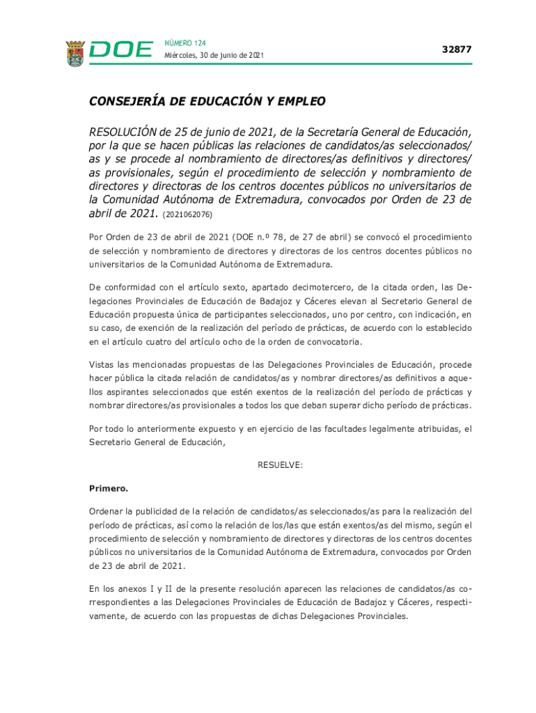 RESOLUTION DE 25 DE junior DE 2021, DE la Secretary General de Educacin,