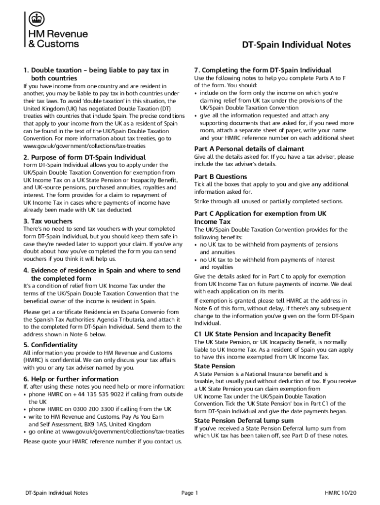DT Spain Individual Notes 1. Double taxation being liable to pay tax in both countries7. Completing the form DT Spain Individual you have income from one country and are resident in another, you may