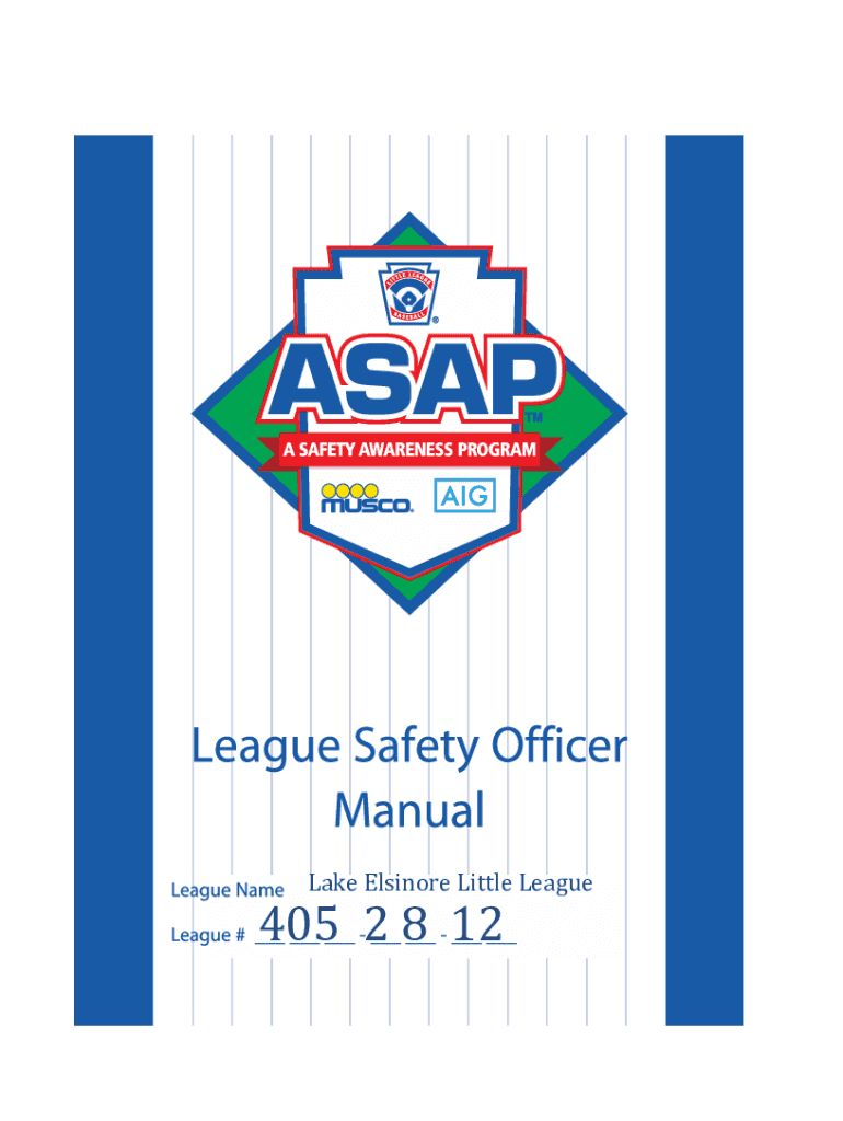 Lake Elsinore Little League405 2 8 12SAFETY MANUALLY ELSINORE LITTLE LEAGUE 2021 SAFETY MANUALSafety Officer Email: safety×lakeelsinorelittleleague.com LAKE ELSINORE LITTLE LEAGUE SAFETY MANUAL 2021