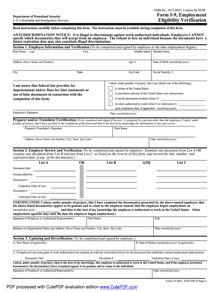 Form I-9, Employment ... PDF processed with Cute PDF evaluation edition WWW. ... employment in the United States. 9. Driver×39’s license issued by a Canadian.