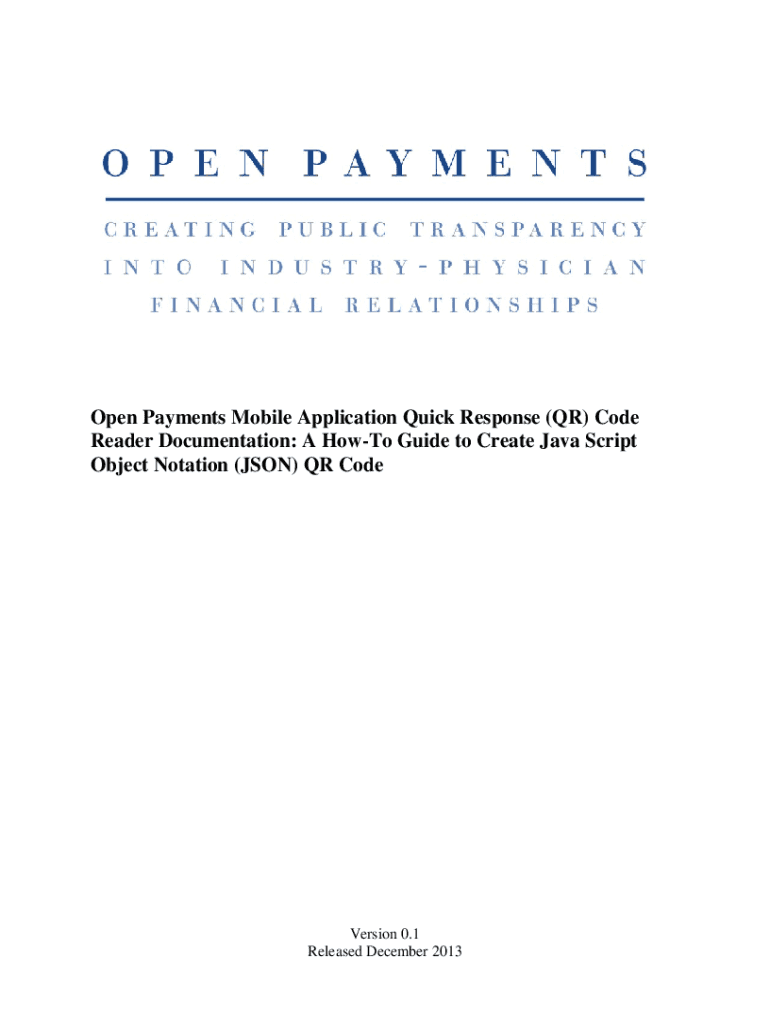 Open Payments Mobile Application Quick Response (QR) Code Reader Documentation: A How-to Guide to Create JavaScript Object Notation (JSON) QR Conversion 0.1 Released December 2013Table of Contents