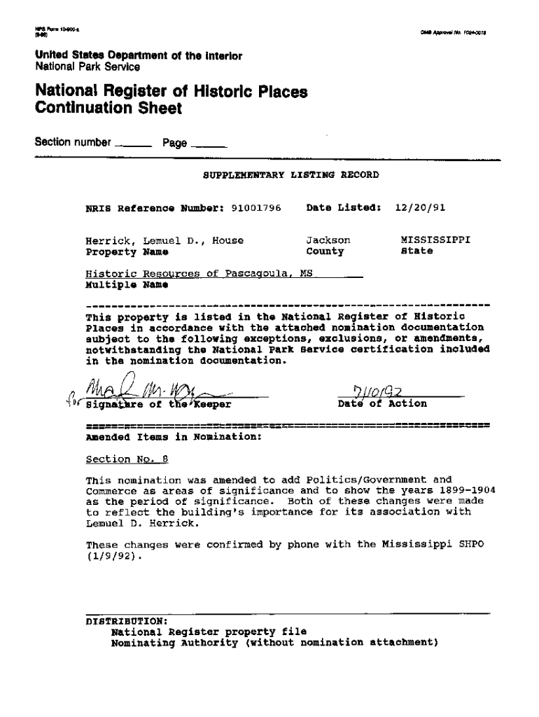 Form 1&000×United States Department of the Interior National Park ServiceNational Register of Historic Places Continuation Sheet Section number ___ Page ___ SUPPLEMENTARY LISTING RECORD IRIS Reference