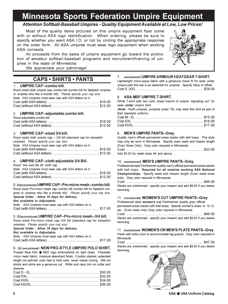 Minnesota Sports Federation Umpire Equipment Attention SoftballBaseball Umpires Quality Equipment Available at Low, Low Prices! Most of the quality items pictured on this umpire equipment flyer come